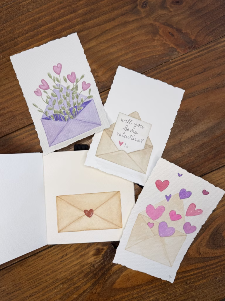 This week I did envelopes. Lots of envelopes with all the hearts and Valentine’s Day vibes.