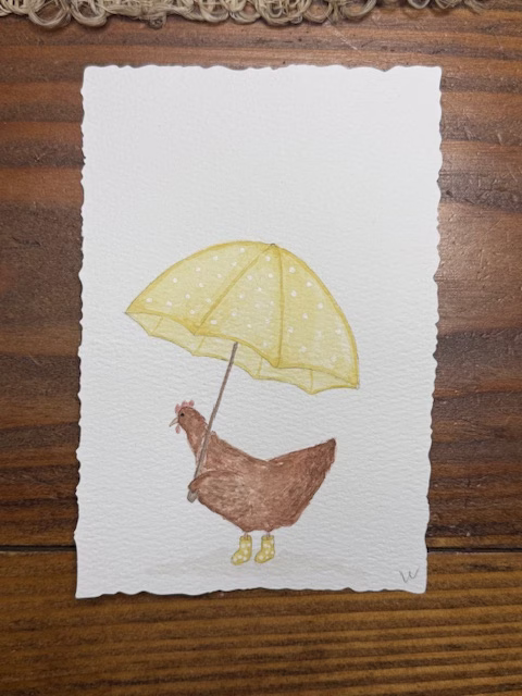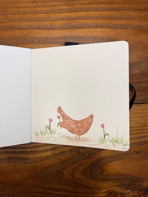 This chicken was the first one I painted this week, and although it has some depth, it has no comparison to the chickens above. So even in a week from beginning to end, I learned a little bit more about how to give a painting depth, specifically a chicken. I don’t know why it’s hard for me to figure out the depth of chickens, but it’s proving difficult. I’m glad my week ended with some great paintings of chickens.