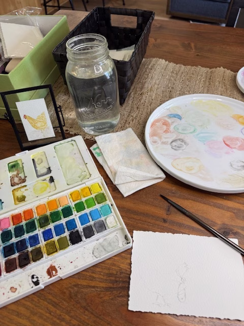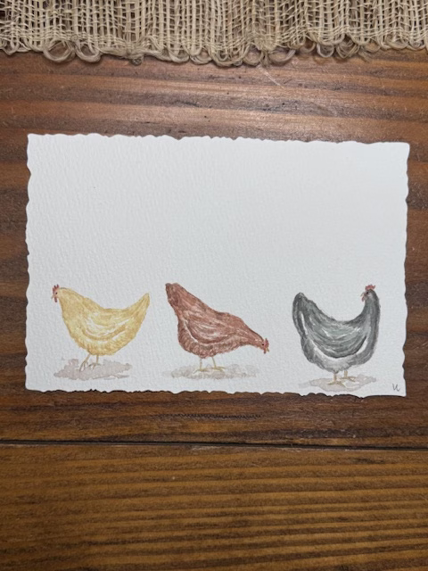 This week, as I said in my post last week, I set out to add more depth to my paintings, especially when I paint chickens. I would say it was a success. We are teaching Quinn right now that practice makes BETTER, not perfect, because we will never be perfect, but we can be better. I’m feeling that way this week. My chickens aren’t perfect, yet they are better, and I felt way more comfortable painting them this week and trying different techniques.