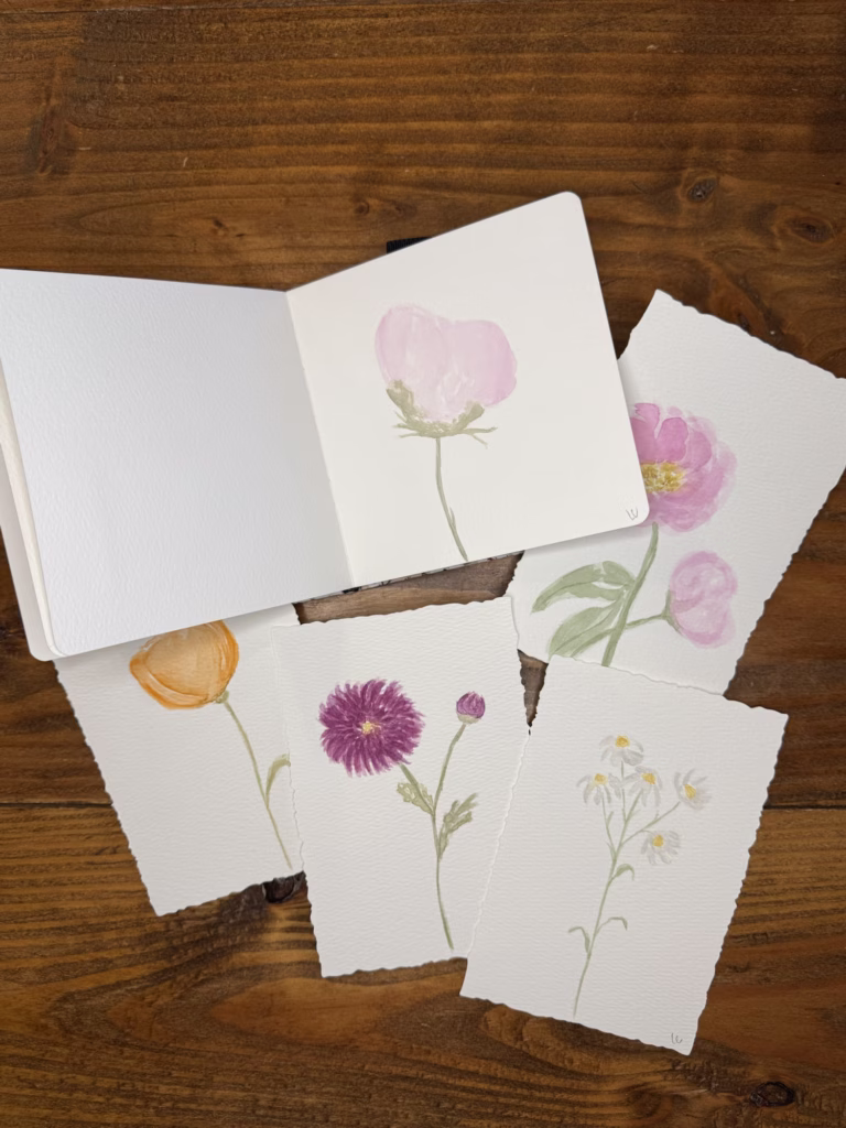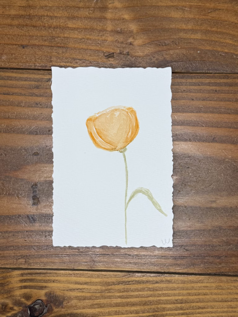 I’m type A. So this was a little hard. But building on the foundation of last week with the envelopes I feel like I was able to bring the flower to life with deep tones added on top. The paintings came to life and I got to know my brushes because I had to use them to create the shape of petals and leaves.