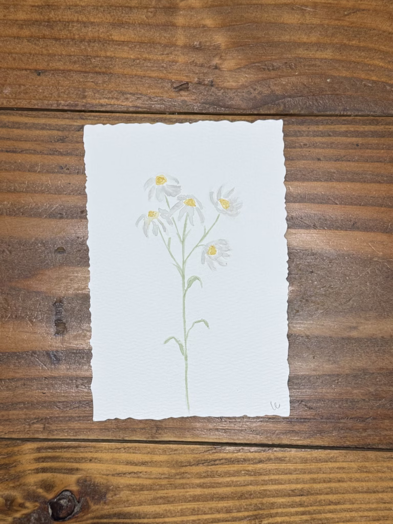 I also learned that flower petals don’t have to be drawn to be painted. I cruelly found that painting them in a free way was easier and I was able to get the shape I wanted. Throughout the week, with the flowers I found myself wanting to pen it out where I was going or a flower shape, but this week wasn’t for that. I actually am looking forward to painting flowers again with more structure in the spring.
