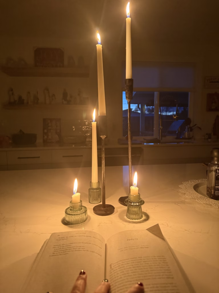After the transformer was fixed and we got our power back, we returned to our usual nightly routine. TV, tea, reading, etc., what I realized is that in our life right now, with all we have distracting us, having a night where it’s quiet and technology is off is rejuvenating. It allows for creativity to take root. It allows our brain to rest with less stimulating activities, lights, and noises. But what is most important is that it gives us an opportunity to bring our attention to God’s voice. So often in our world today, we distract ourselves because whatever is going on inside is just “too much” to handle.